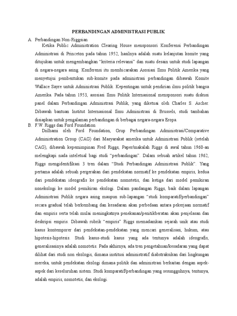 Penulisan laporan buku ini ditulis dalam rangka memenuhi salah satu tugas tengah semester iii tahun ajaran 2017/2018, jurusan administrasi publik dalam mata kuliah perbandingan administrasi negara dibimbing oleh ibu dr. Perbandingan administrasi negara adalah ilmu yang baru bila dibandingkan dengan ilmu perbandingan politik yang merupakan ilmu yang ditemukan asalnya pada zaman aristoteles. Keban, su, murp bab i : Hubungan administrasi negara dengan perbandingan sistem politik. Review ilmu administrasi publik nama :